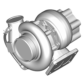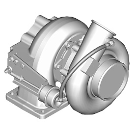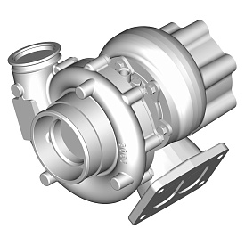 Оборудование состоит из турбинного и компрессорного колеса, вала и корпуса, выполненного из жаропрочного материала. Турбинное колесо преобразует энергию выхлопных газов, вращая вал, а компрессорное, в свою очередь, нагнетает воздух в цилиндры ДВС. Поток отработанных газов регулирует перепускной клапан.